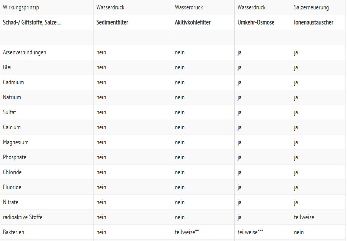 Vergleich verschiedener Trinkwasser-Filtersysteme